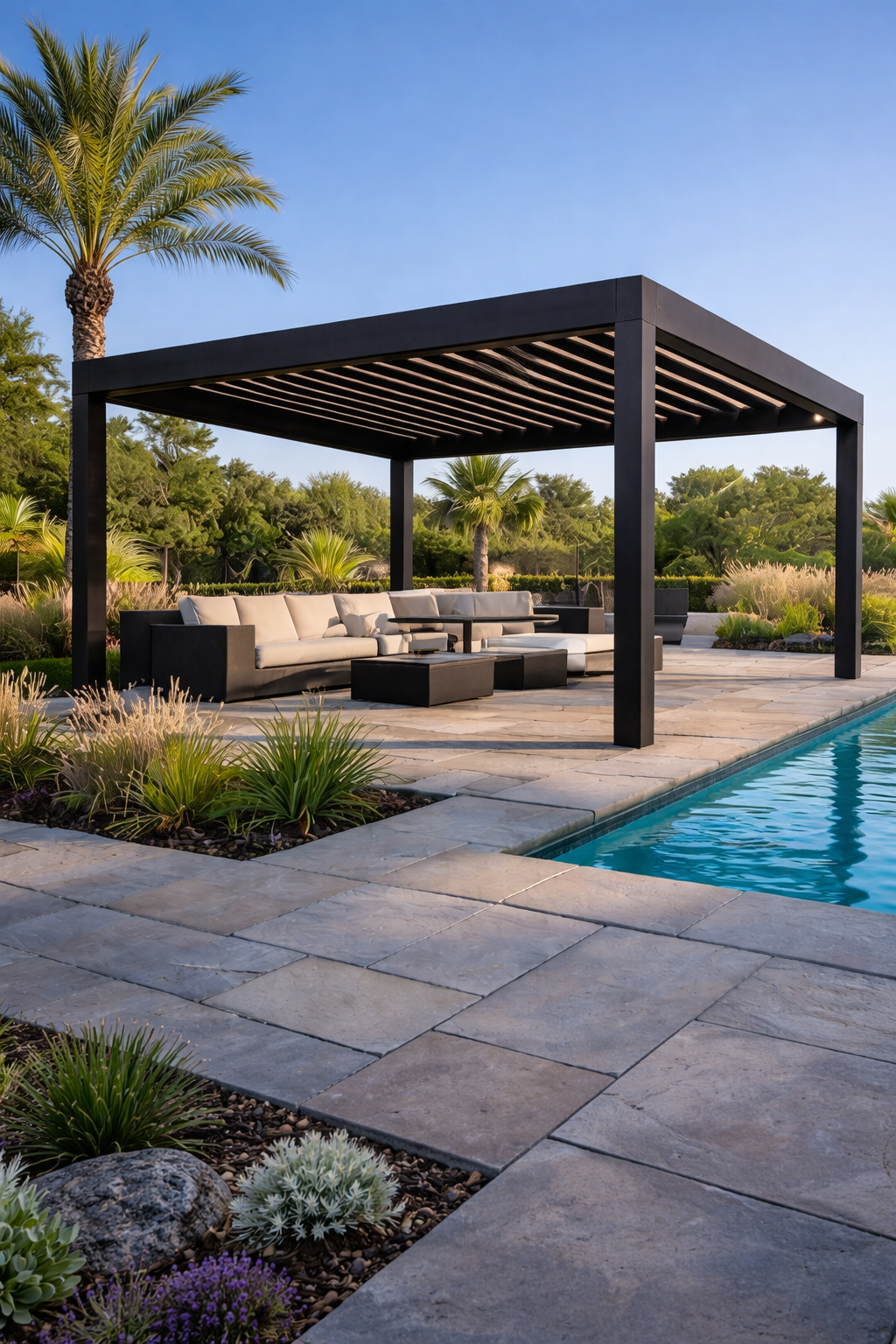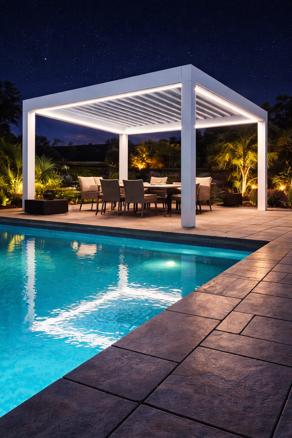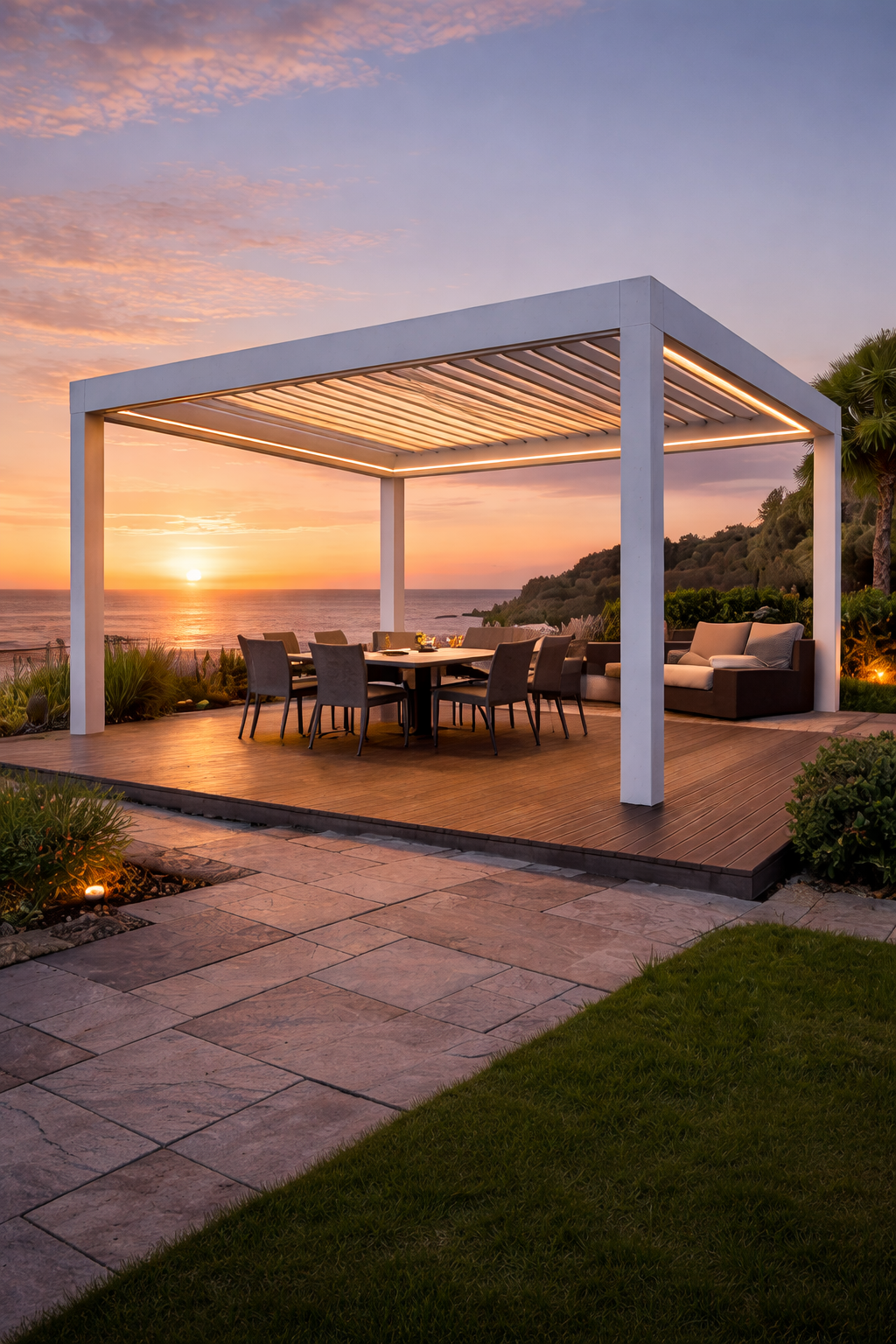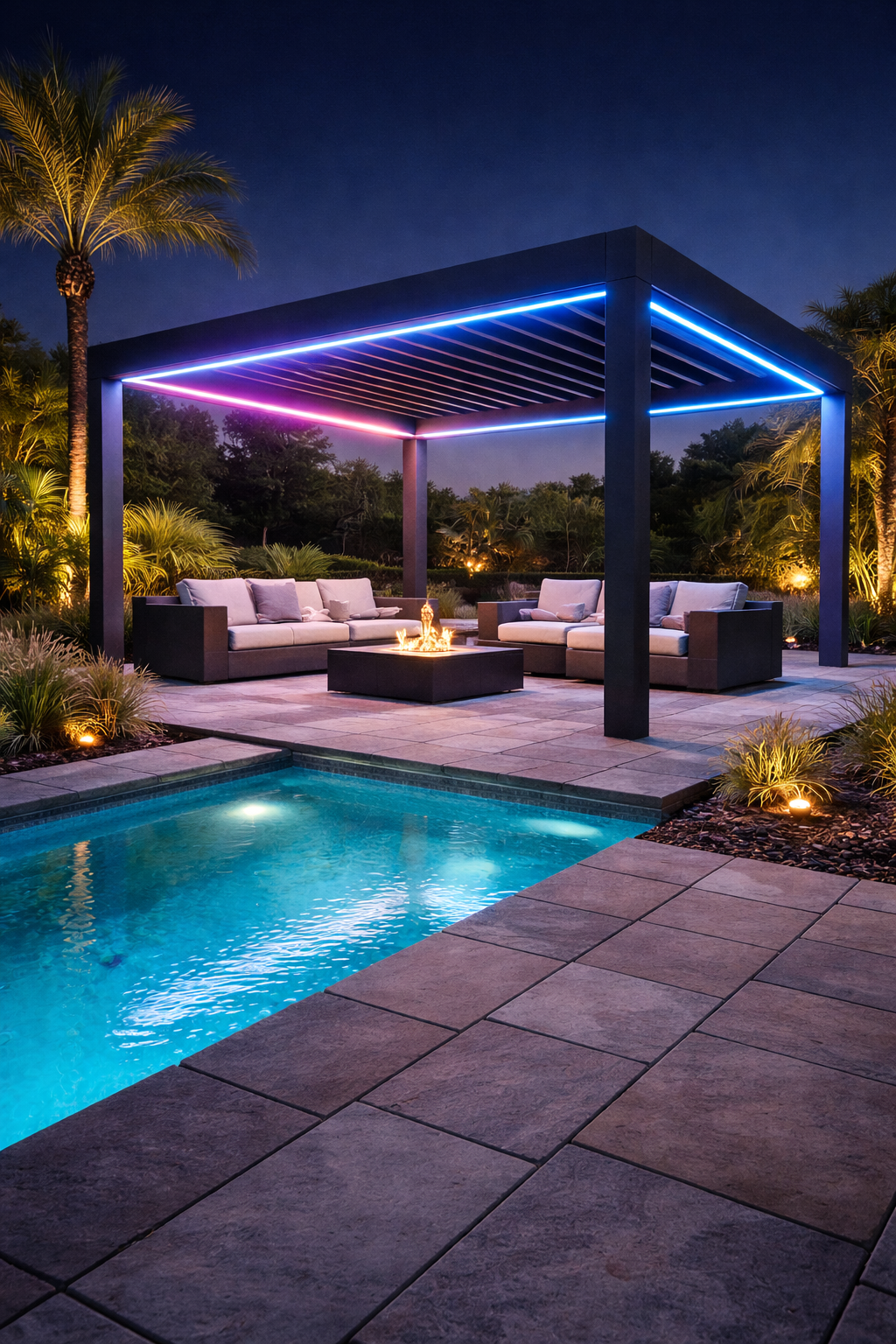 A smart pergola is an outdoor structure that incorporates motorized, automated, and connected technologies to enhance comfort, convenience, and usability. Unlike a traditional pergola, which is a fixed open-roof framework, a smart pergola could include features such as: